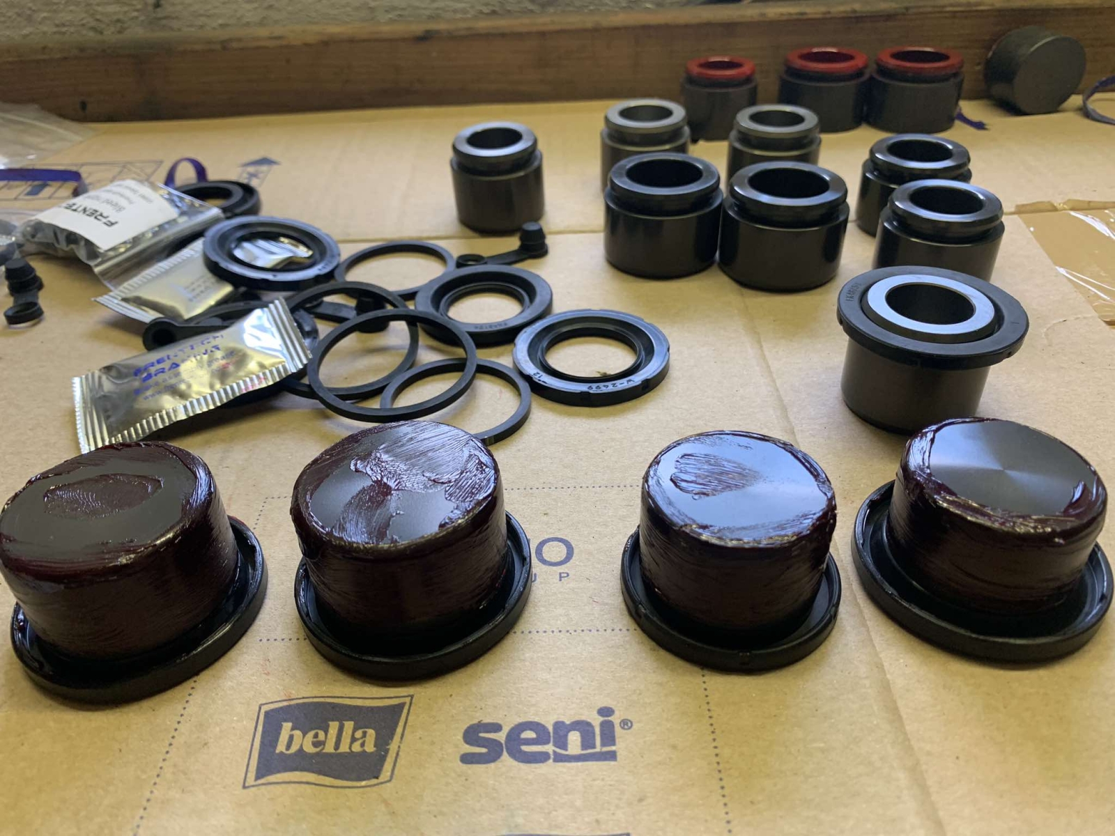 Brzdiče byly odlakované, opravily se závity, nalakovaly se a poté do nich byly vloženy nové těsnící gumy a válečky.