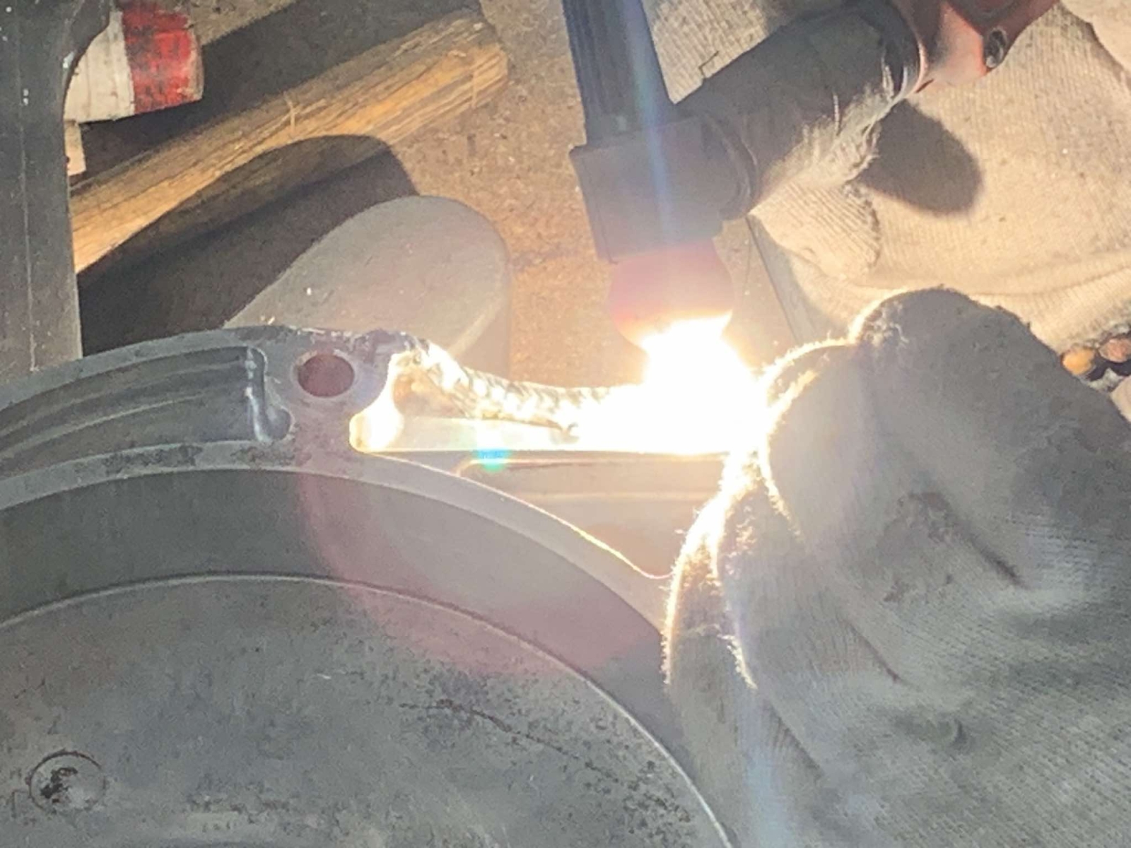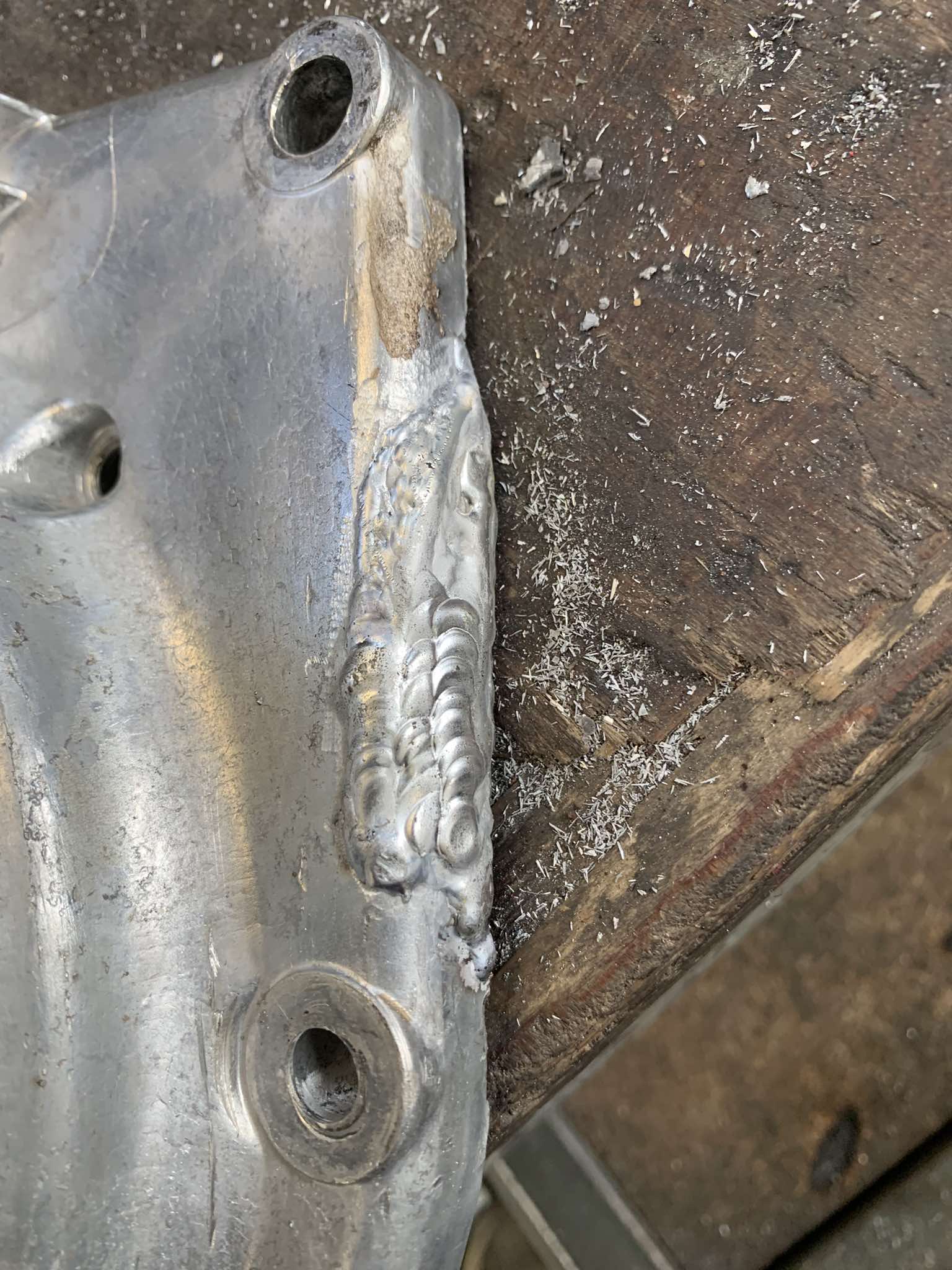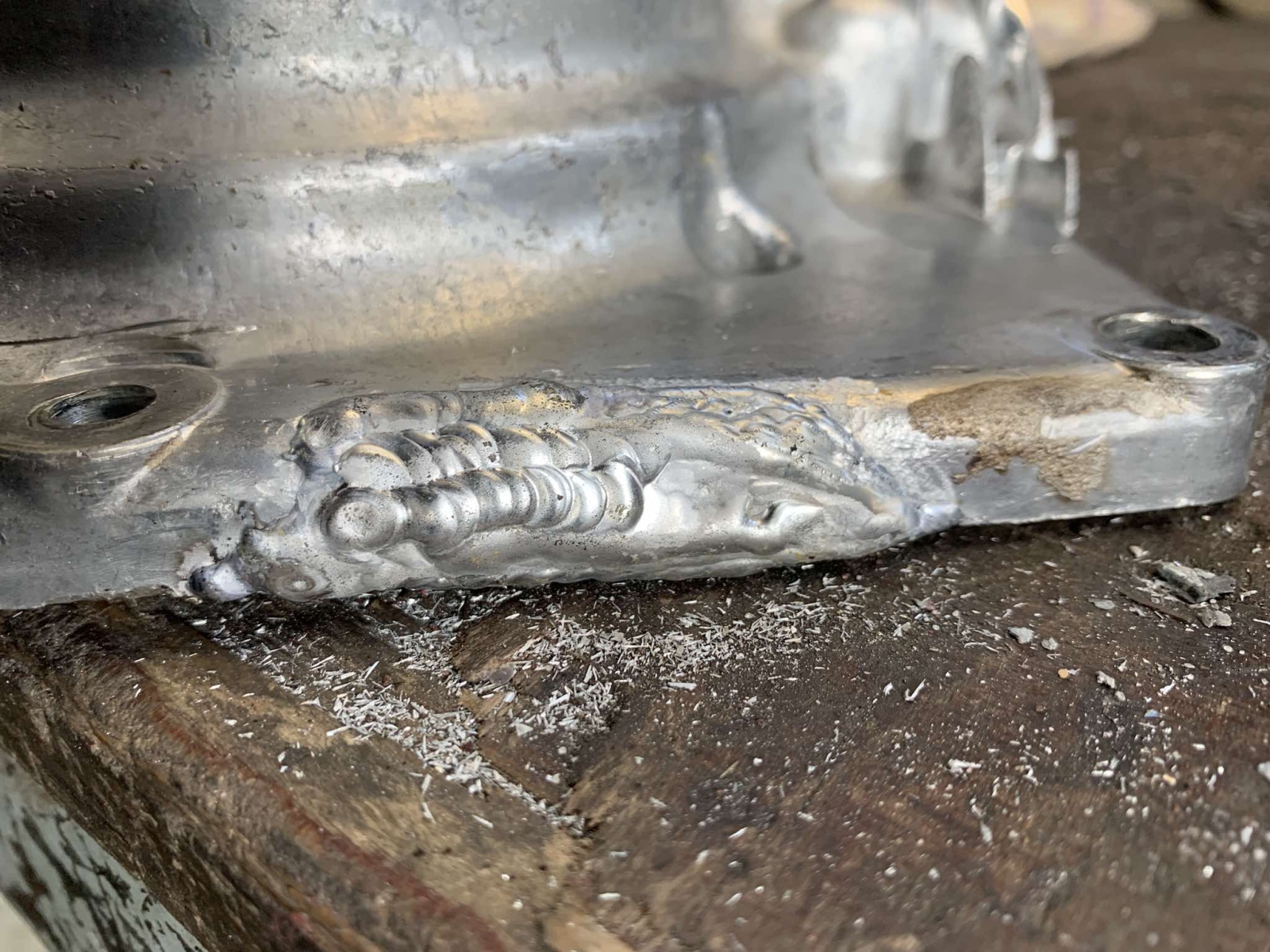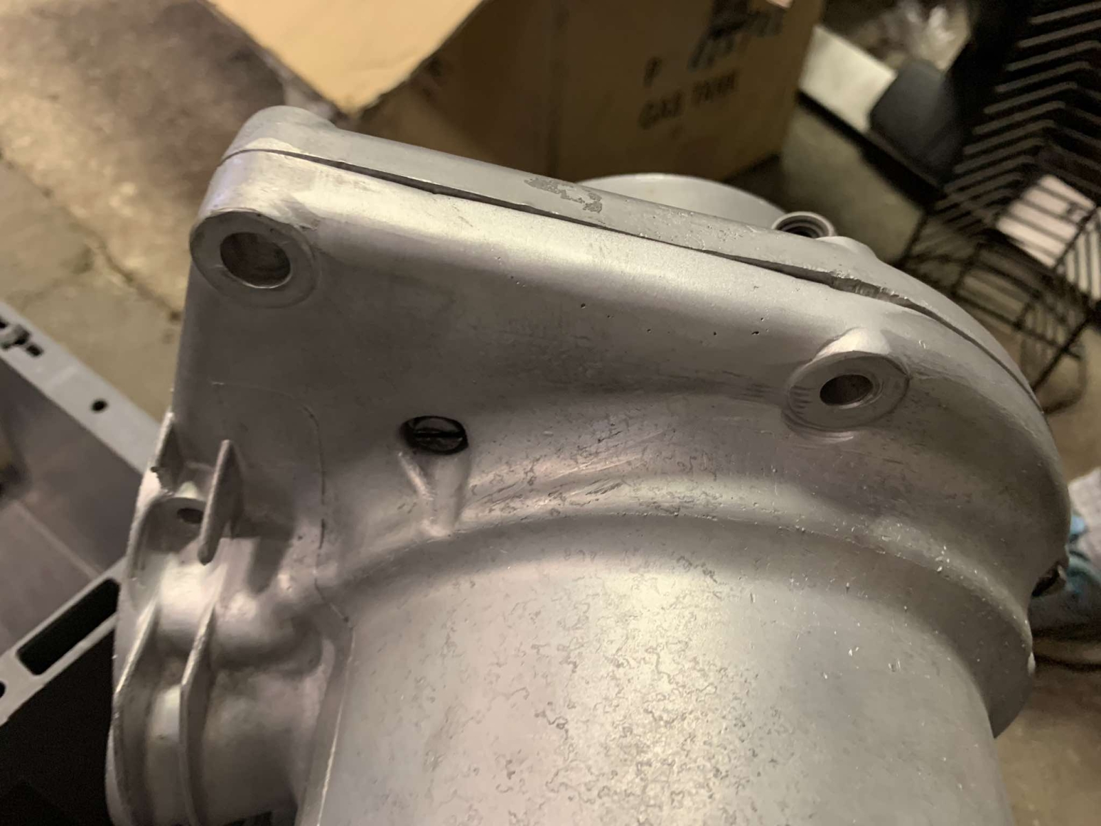 Na bloku motoru byl ulomen přední kus karteru po snaze o neodborné rozpůlení motoru šroubovákem. S majitelkem balo domluveno, že na spoji karterů zůstane o milimetr více materiálu a on si karter srovná do roviny.